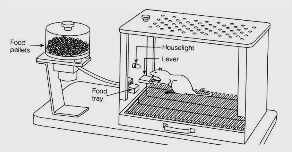 如果按钮按下去之后,100% 都会掉落食物的话,当小鼠学会了按这个按钮之后,实验人员停止掉落食物,这个小鼠会很快发现这个按钮不管用了,它就不会再去按了。