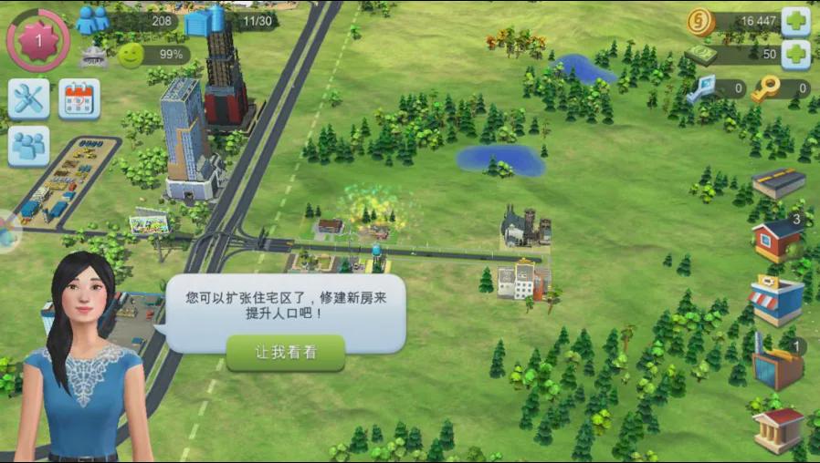 但是下边是现在的《模拟城市》的手游,你会发现在早期的时候,它把我要做什么规定得非常死;