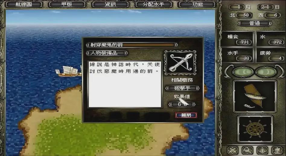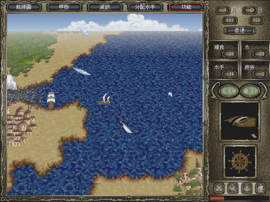 还是这个《大航海时代4》,上面是我小时候玩的,你会发现它非常专注于航海这个事情本身,它的界面上有经纬度、有风向、有掌舵的方位。