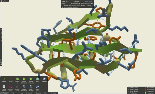 比如这个游戏叫Foldit 壹资网,它是一个蛋白质折叠电子游戏,创作者把蛋白质的结构预测做成了一个解谜游戏。