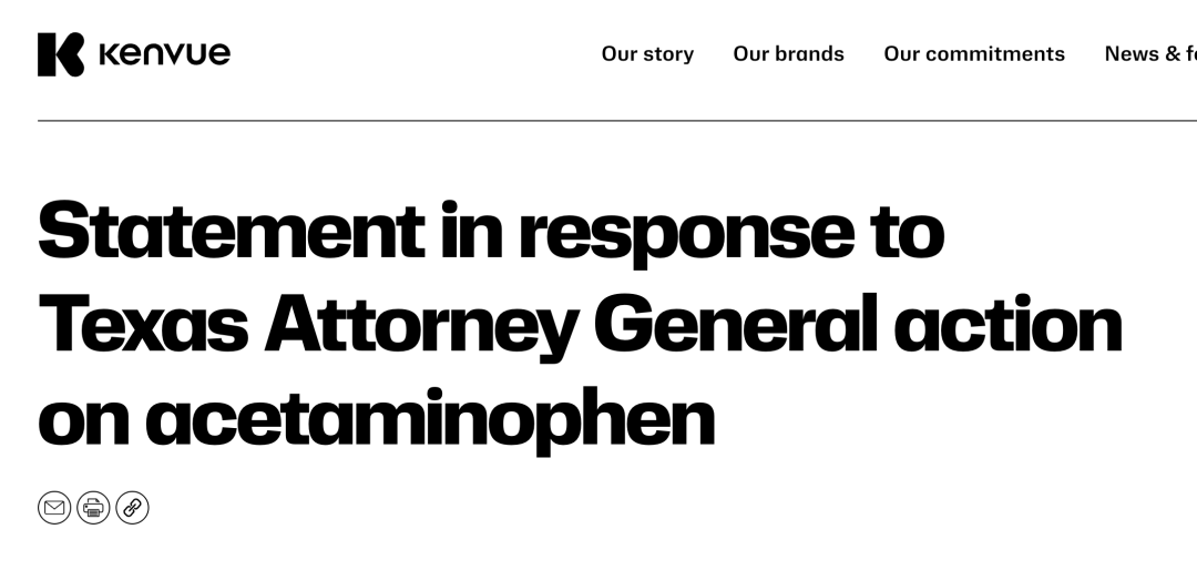 Statement in response to Texas Attorney General action on acetaminophen - A new view of care