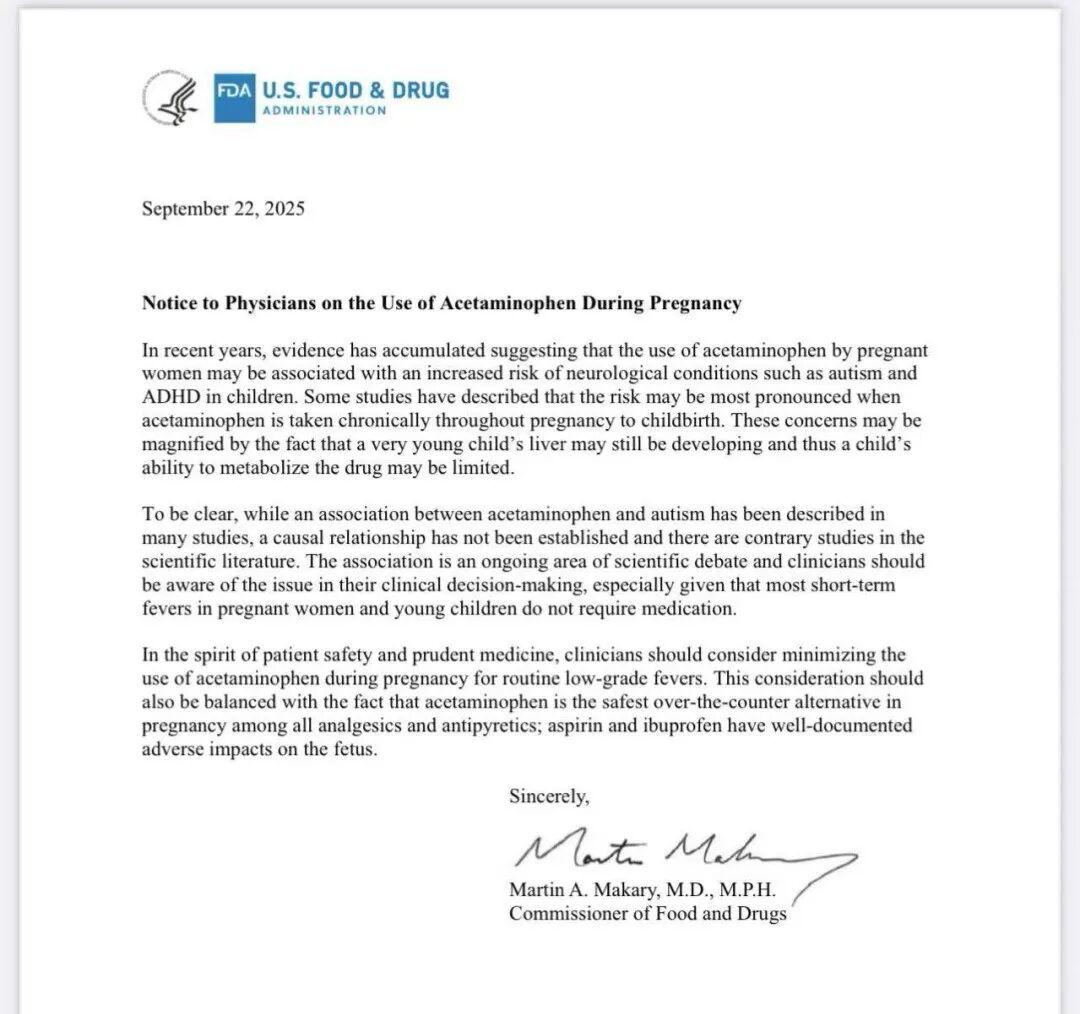 美国食品和药物管理局(FDA)随后发布通知,医生应考虑限制泰诺的使用,同时还表示该药物与儿童自闭症之间的“因果关系”尚未确定。
