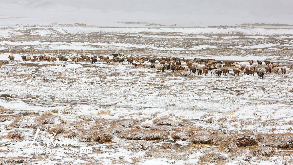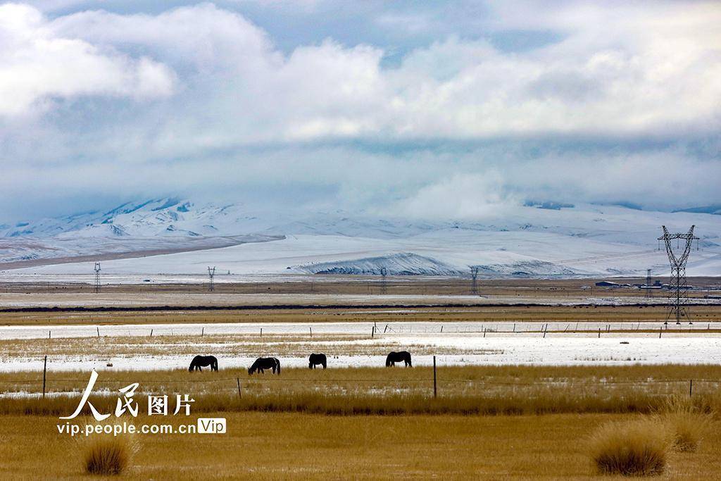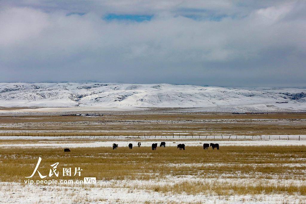 受冷空气影响,新疆自西向东沿天山一带迎来风雪降温天气,部分地区出现中到大雪,草原上的牧草被白雪覆盖,景美如画。蔡增乐摄(人民图片网)